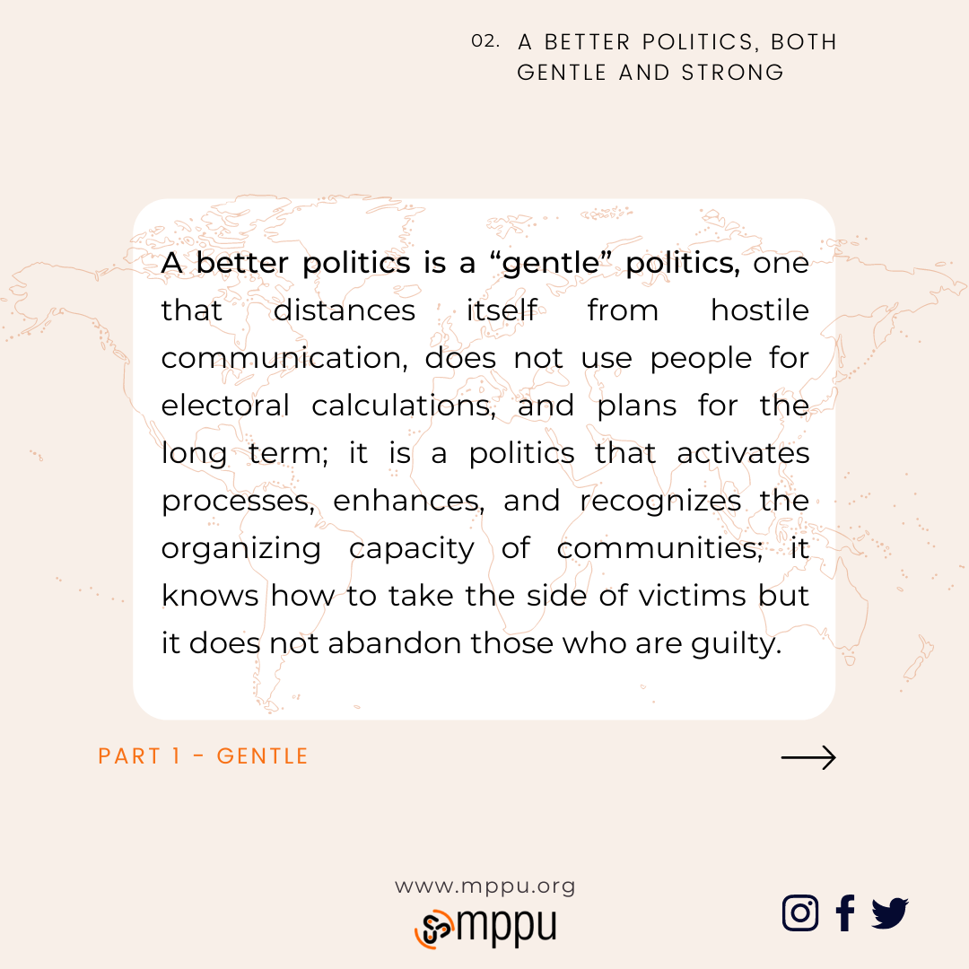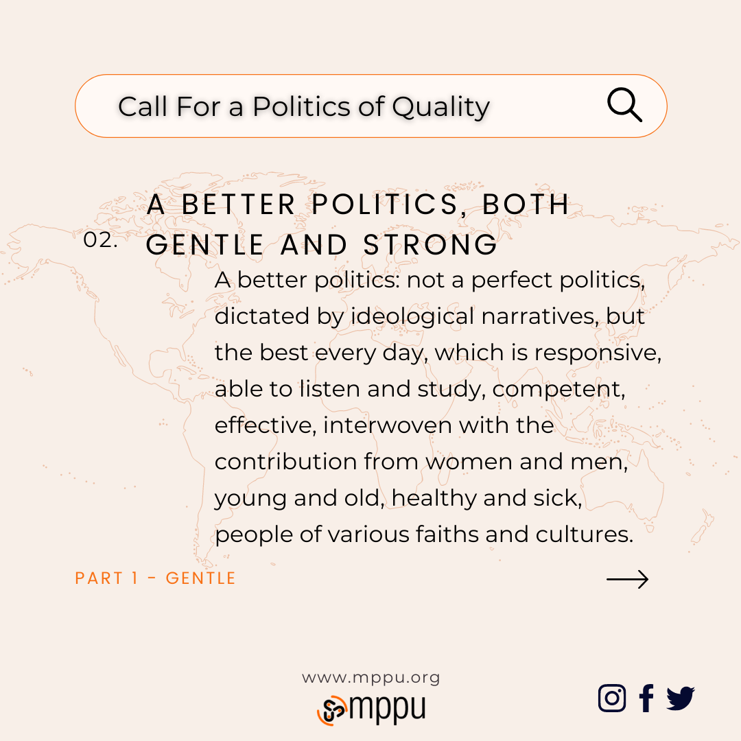 We are convinced that there is a political vocation that concerns everyone, but with this Appeal we have chosen to address in particular those who live political activity as a main commitment: our Today’s voice is addressed to them.