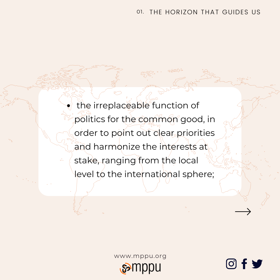 In this context, politics seems to flounder… That’s why we asked ourselves: is it possible to identify the profile and specific functions of a policy worthy of its highest mission, that is to serve humanity?