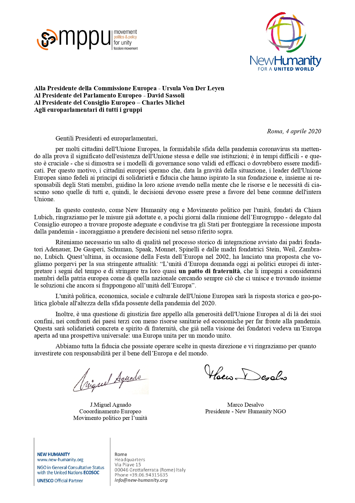 Ingrandisci immagine Lettera a Presidenti ed europarlamentari: stringere un patto di fraternità Di Riccardi|2020-06-17T07:16:33+02:005 Aprile, 2020|Banner IT|0 Commenti Condividi questa storia, scegli tu dove! facebooktwitterlinkedinredditwhatsapptumblrpinterestvkEmail Scritto da: Riccardi Post correlati Soluzioni di Co-Governance nelle città: Il Contributo di MPPU e New Humanity alle Nazioni Unite Galleria Soluzioni di Co-Governance nelle città: Il Contributo di MPPU e New Humanity alle Nazioni Unite PER UNA DEMOCRAZIA DELLE RELAZIONI Galleria PER UNA DEMOCRAZIA DELLE RELAZIONI Intitolazione Strada Chiara Lubich Galleria Intitolazione Strada Chiara Lubich Giornata internazionale per la consapevolezza sul disarmo e la non proliferazione Galleria Giornata internazionale per la consapevolezza sul disarmo e la non proliferazione Scrivi un commento Annulla rispostaCommento Salva il mio nome, email e sito web in questo browser per la prossima volta che commento.
